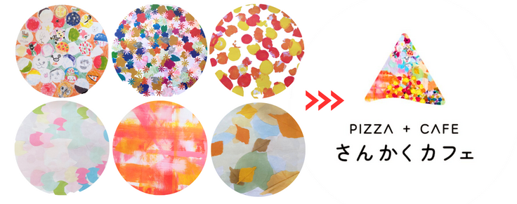 「さんかくカフェ」のロゴは、福祉ネットワークさくらが営む高齢者・障がい者6事業所のスタッフと、ご利用者さんが事業所ごとに、ちぎり絵・切り絵・絵具スタンプ等で全員が「参画(さんかく)」し、デザイナーさんにロゴの三角の中にすべてを取り込んでもらいました。みんなの思いの詰まったロゴが完成しました!