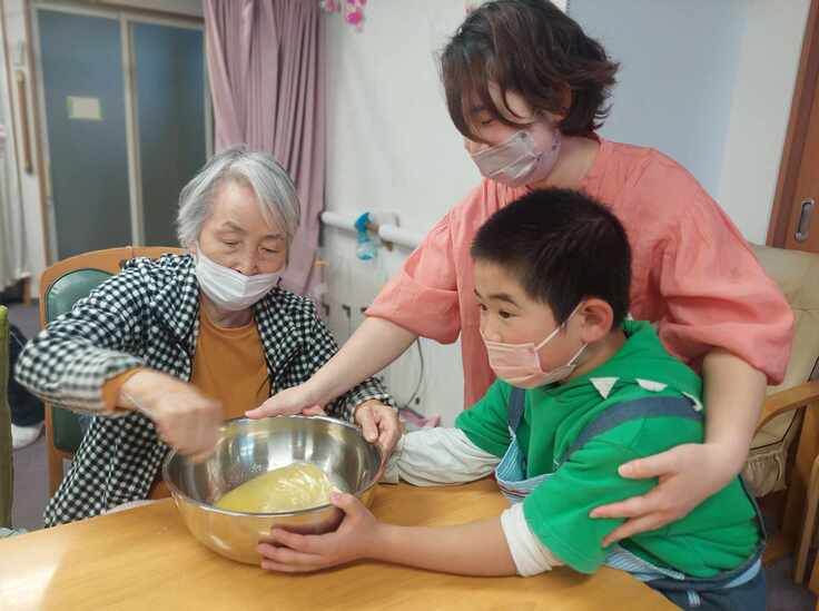 弊社は、高齢者事業所:地域密着型デイサービス、地域密着型認知症対応型デイサービス、居宅支援(ケアマネジャー)と、障がい者事業所:生活介護、就労継続支援B型、放課後等デイサービス、相談支援を、同じ屋根の下で営んでいます。