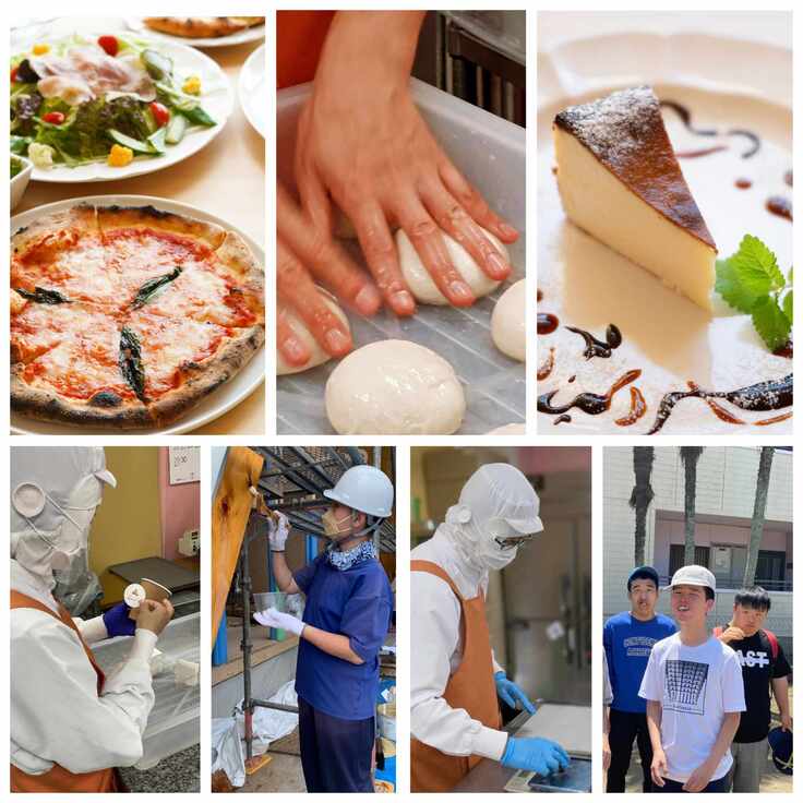 ピッツア生地、バスクチーズケーキ、テイクアウト商品シール貼りチラシ配り等々・・・