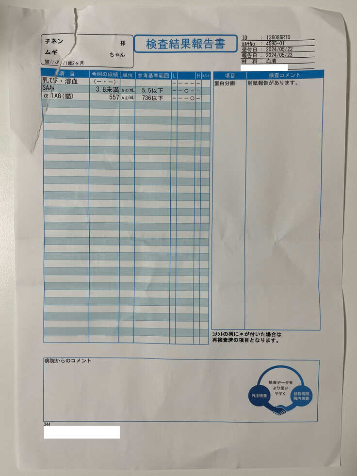 アルブミンの数値0.6以上が、84日間で投薬終了できるひとつの目安になるそうで、むぎは現在0.5。