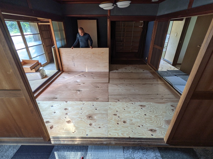 ( 畳敷きの居間)(床の補修)(整備改修前の古民家)(床の間ギャラリー)