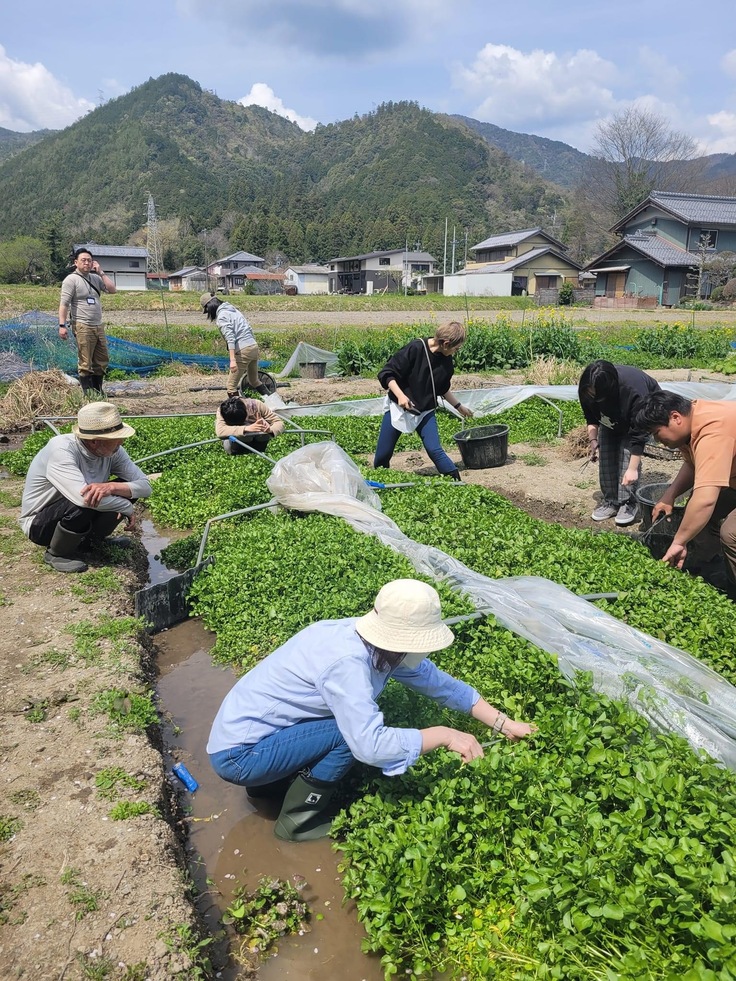 2023年度 3年目を迎えたクレソン水流園のクレソン栽培は順調に伸びて、山からの水を豊富に利用して、ミネラルたっぷりの大きな葉っぱのクレソンとして東京のオーガニックスーパー、全国の有名飲食店で人気の商品として知られるようになりました。クレソン粉も健康食品として根強い人気となっています。クレソン栽培は、全国的に専業にしていく農家も少なく、個人的な規模で成り立っています。クレソンを学びたいというグループがあり、一緒に栽培をすることになりました。後進をどう育てるかは、今後の課題ともいえます。