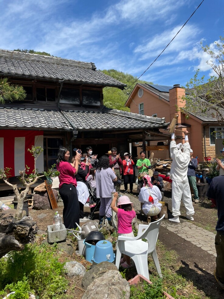 ③さすてな農園は、里山文化を学び楽しむ場所 発足以来、苗植え大会、収穫祭など農業体験を楽しむイベントを、子供から大人まで、心もカラダも解放出来る農園というキャッチコピーのもと多数回開催してきました。その他、山菜.薬草摘み、ハーブでソーセージ作り、味噌作り、竹灯籠祭り参加、伊自良大実柿干し柿つくり、柚子巻き作り、おくどさん再現、餅つき大会開催、どんと焼き大会、燻製作りなどバラエティーに里山文化を来園者と共に一緒に学び楽しんできました。また農園古民家ー伊自良庵に訪れる人々同士が仲良しになったり、農園に飾られたアート作品と出会う空間作りを心がけています。現在浅野モウムさん床の間ギャラリーと柳萌心さんの書が玄関で迎えしたりしています。今後も里山文化の復興を目指す拠点として、さすてな農園ー伊自良庵を整備していきたいと考えています。