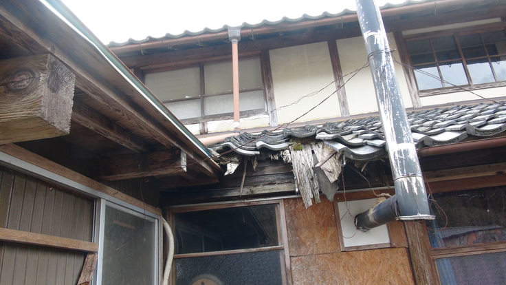 伊自良庵は、築100年の古民家ですが、まだまだ丈夫です。でも至る所で補修していくところが出てきています。腐朽した柱2本→ジャッキアップと新材による補強、屋根瓦の腐朽→ふきかえ、腐食した雨樋の補修、防寒性のある土壁の補修のなどののポイントがあります。