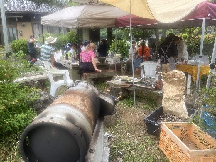 5/19日の日曜日。食いしん坊たちを集め、新装なったドラム缶ピザ窯でピザパーティーしまさた。ピザ生地を上手に作れる主婦2人が米粉と小麦粉の生地2種類作ってくれて、マルガリータ、クレソン、しらすなどのピザ2数枚完食の大成功となりました。骨付き肉を丸ごた炭火で焼くアメリカンBBQも絶品でした。伊自良庵には、おくどさんもありますし、焚き火コーナーもありますし、広い庭で、皆さんのお仲間でアウトドアパーティが出来るのです。