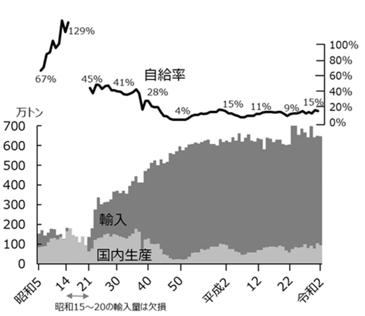 つまり、日本で消費される小麦粉の85%以上は、輸入に頼っています。農林水産省令和2年データ