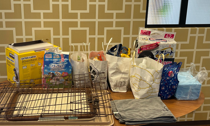 その内容は写真にある様な、未開封のフードやおやつ、健康食品、医療品、ペットシーツ、 ゲージ、クレート、首輪、ハーネス、おむつ、ペットカート、お皿等、多岐にわたり、まだまだ使える物が多くあります。
