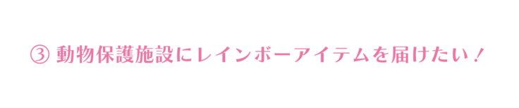 その保護団体にレインボーアイテムを届けて保護活動を支援していきます。