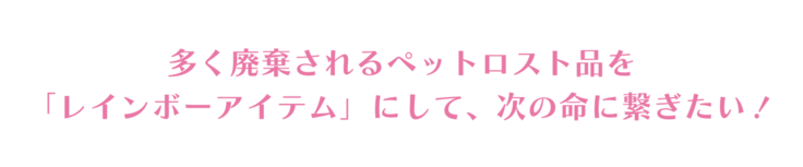 ペット飼養家庭でのレインボーアイテムと、さらにペットフードメーカー等の事業で起こるフードロス品を活かし「5つのペット社会課題解決」を目指していきます。