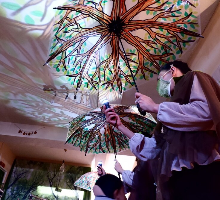 通常サイズのビニール傘を使ってのシークエンスをみていて