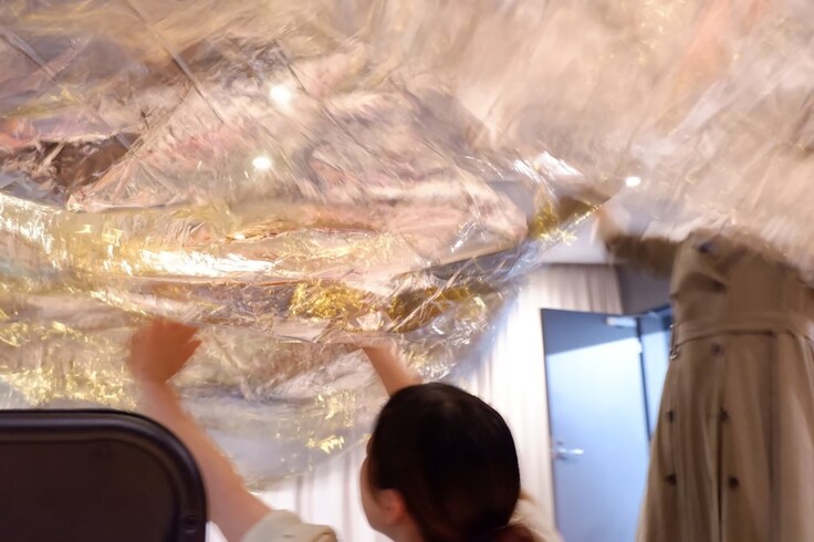 軽い金銀の両面をもったこれ、災害時に活躍するレスキューシートです。