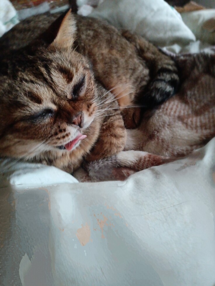 6年前に保護したにゃんた君です😊小さくて可愛かったです仔猫でした🤗私は仔猫のにゃんたには会ったことがありませんが、餌をあげていた方から赤ちゃんにゃんたの写真をもらいました。なんって可愛のでしょうか〜他にも3匹兄弟が居たのですが、長毛の子が2匹居たそうです。2匹が突然居なくなったそうなんですが、仔猫のにゃんたは目に病気があったのですが、治療に連れて行ってもらえなかった為に、今も鼓膜が腫れていて、涙が止まらないのです、治療しても治らなくなりました💦ですが、こんなに大きくなりました😁膀胱炎になったりで、大変でしたが、これからもこの子達と共に幸せにしていきたいとおもいます😊