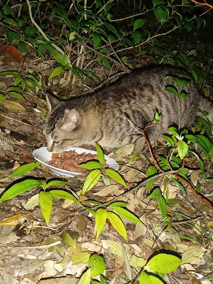 母猫のモジャちゃんと子供の子虎ちゃんも無事でした😭2匹ともに元気な姿を見せてくれました🥴猫達の小屋を作ってくれたおじさんがモジャママに餌をくれていたそうでした🙏おばあちゃん猫はやっぱり二週間前に出て行ったきりで戻っていないそうです💦代わりにモジャママが毎日早い時間帯にご飯をねだりに来る様になったそうです😊子供の子虎ちゃんもちゃんと元気で居ました~本当に私は寿命が縮む思いで居ましたので、凄くホッとしましたが、おばあちゃん猫は一体何処へ行ったのか、何があったのか…とても複雑な思いのままです😩