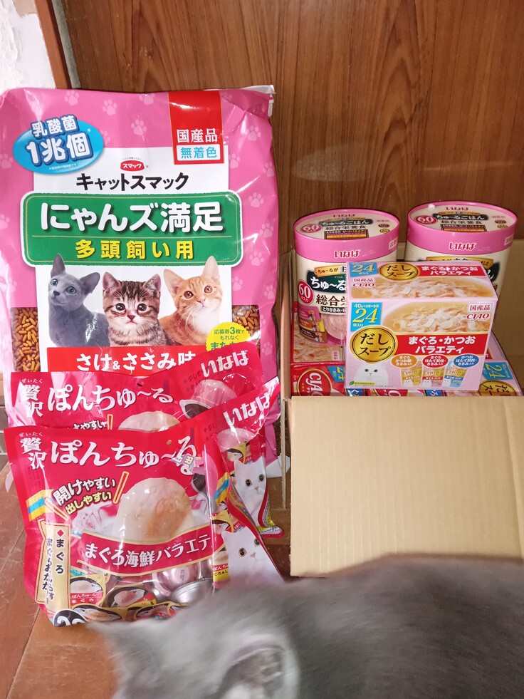 昨日はみしゃまる様から猫達の餌を頂きまして、今日はぐーたん様からの餌が届きました😄🙏なんって優しい方々何でしょうか😭本当に助かります〜🙇ありがとうございます😀
