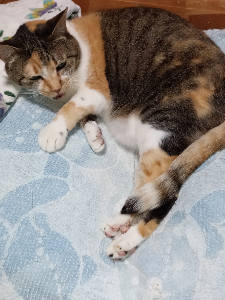去年、ノアちゃんを保護した時も凄い下痢でした…全身💩で汚れていました、鼻水と酷い口内炎で、ガリガリと痩せていました💦しばらく下痢が収まることが無くずっと酷かったのですが、ようやく治ったと思っていたら、去年保護した春空君が同じ様な水下痢になっていました😰 ずっと治らなくて、心配です…毎晩夜中に仕事から帰ってすぐに野良猫達の餌やりに2時間半位掛けて、その後に家に帰ってみんなの餌と薬の投与とトイレの大量の中身のお掃除です…が、頭がクラクラの体がふらふらので、途中で太陽が登りので、朝の6時半過ぎてしまい、寝なきゃ〜と焦るのですが、逆に朝の日差しで目が冴えてしまって、眠れなくなってしまいました💦 目の前のガクト君も体重が8.7キロもあるのに骨が変形してしまい、ビコ引きながら重い体を引きずっているのを見ては悲しくなってしまいました💦 先天性だそうなので、手術しても治らないと病院で言われました🥶この子はこの先どうなって行くのだろう、歩けなくなったら凄く可哀想な事になってしまうのを考えると、脳みそが固まってしまいました…こっちの子も、あっちの子も年取ると共に人間と一緒で、病気だらけになってしまうんだなぁ〜と思いました💦