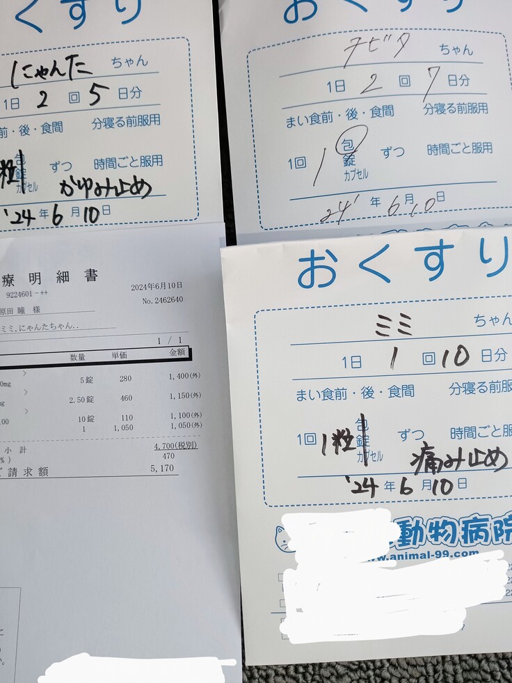 保護猫達と野良猫達の全員を病院に連れて行くのは厳しいので、病院から出してもらうお薬はとても助かります
