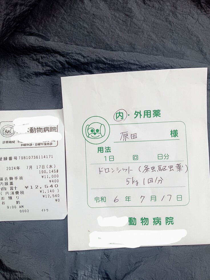 昨日去勢の為に手術をしたタマ君を今日迎えに行ってきました、ご飯と駆虫の薬を食べてくれました😀