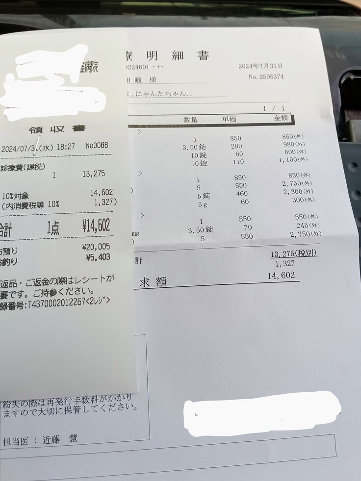 ミミちゃんの痛み止めの注射がちょうど切れているそうです💦 なので、痛み止めのの薬を出して頂きました。3日か4日後に注文が届くそうです。ミミちゃんの歩き方がもはや爬虫類の様です😓