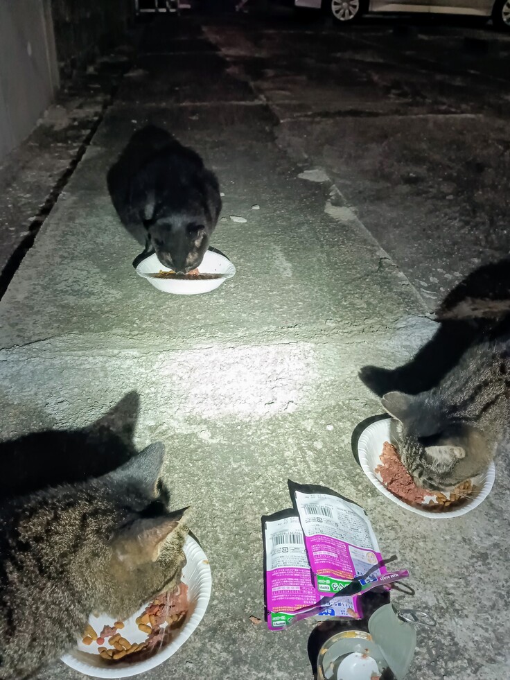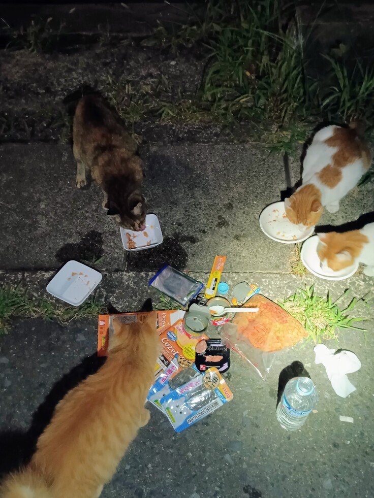 毎晩野良猫達は、ご馳走を楽しみに待ってくれています😊ご支援をして頂いた皆様に本当に感謝です🙇
