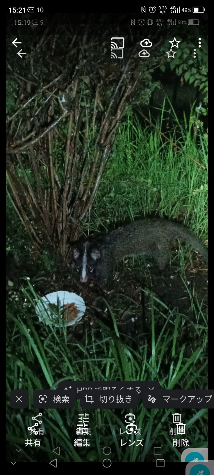 昨日の夜中の餌やりで、小さい侵入者が来ました、カサカサと葉っぱが騒いて、猫達が逃げ回ってしまいました…別の猫でも来たのかと思いましたら、なんとハクビシンの子供でした😵 大きいハクビシンは見た事がありましたが、猫達の餌を横取りに来たのですね💦 公園が大きいと野生動物も生息しているんですね…狐と狸とハクビシンとどでかい蜘蛛達😰