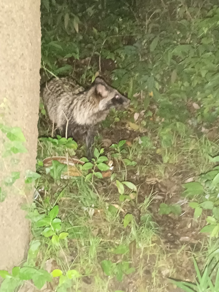 ずっと狸に猫の餌を狙われていたり、猫達が威嚇すると狸も唸って威嚇し返したりしています💦結果的には猫達が逃げて餌を奪われてしまうパタンーになってしまいます😵