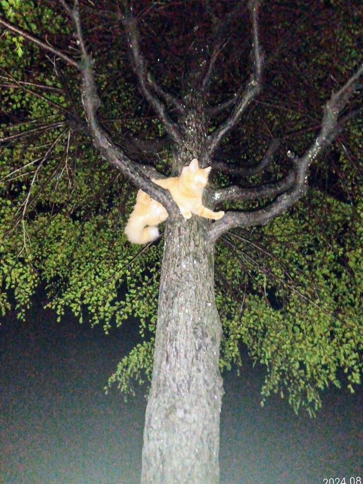 餌やり終えて、戻りましたら、なんとまず、風花が木の上に登って居ました😩
