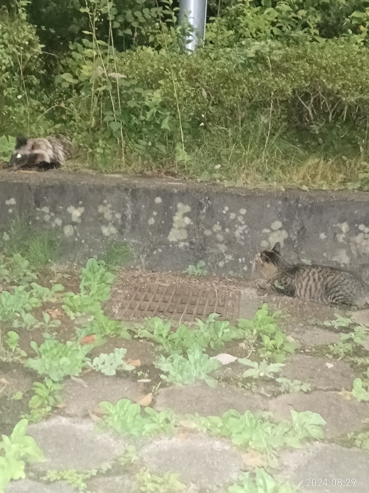 去勢の予約日終わって出て来たオス猫君です!プロジェクトは8月31日で終わりますが、9月にも予約を入れましたので、捕獲出来ましたら、活動報告で報告致します🙇もう一匹は3日、4日出て来ていません💦
