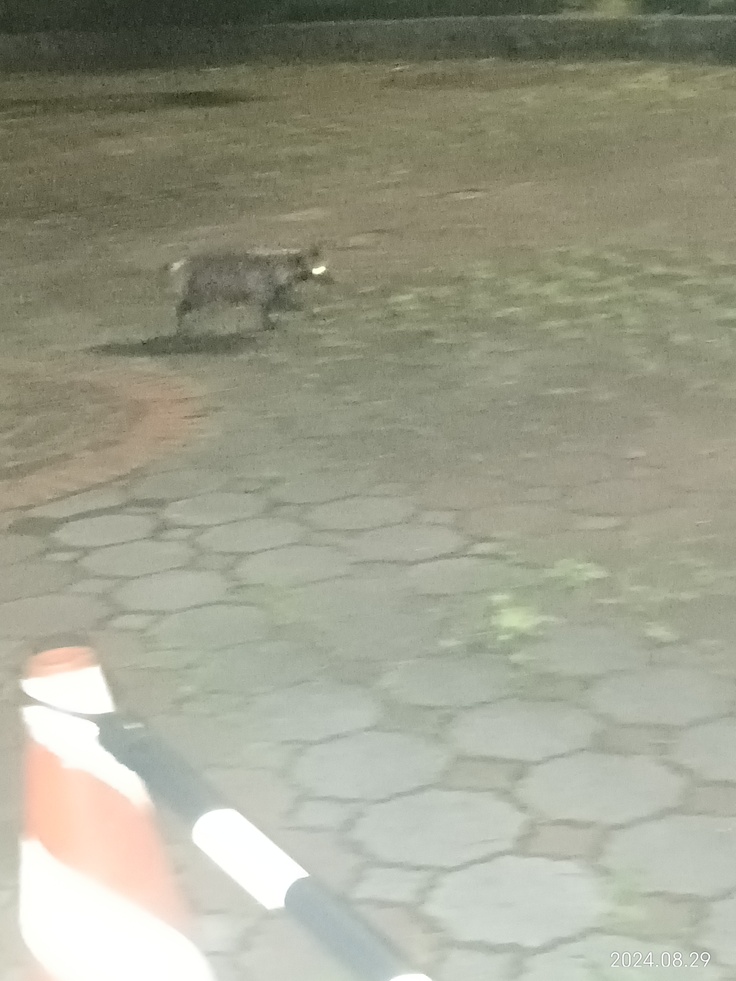 全然人と猫を怖がる様子もなく、猫達のお椀を加えて逃げて行きました😵💫 ですが、加えた途端に中身の餌が全部こぼれてしまいますので、本人は全然分かっていません😁 結局空っぽのお椀を草の茂みに持ってかれて、食べれないので、又出て来ました🙃 一昨日も今日もお椀を見つける事が出来ませんでした💦 どろぼう猫という言葉がありますが、どろぼう狸も居ます😵 お椀を返せ〜😅 いつも餌を取られない様に狸の分も置いて置きます。