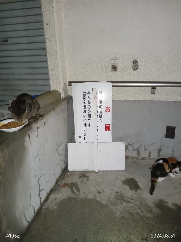 少しご飯を置きましたので、チビ黒猫の姿はありませんでした😓 餌やりのおばあちゃんも毎月6万から7万円位の餌代が掛かっているそうです💦 猫ちゃん達は15匹位居るそうです。良い餌しか上げていないそうです💦