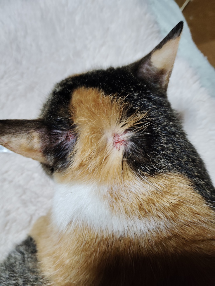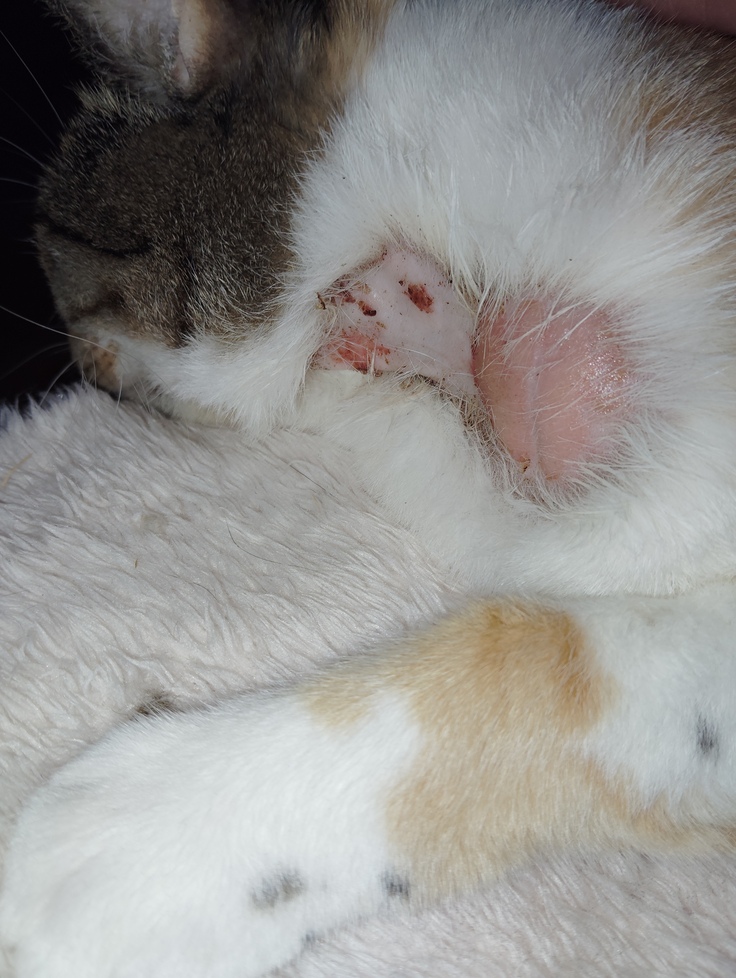 保護猫のミミちゃんも塗り薬を全部舐めてくれて、ますます皮膚が