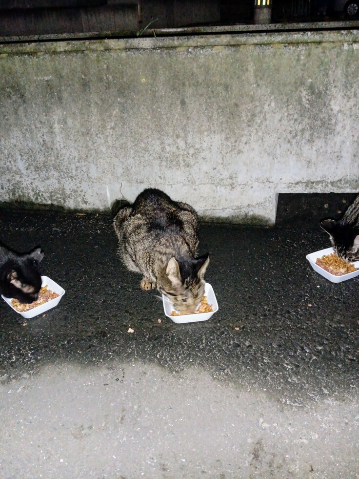 小屋を作ってくれたおじいちゃんご面倒を見てくれている子達が最近毎晩ご飯をもらえなくなった様なのです💦 毎晩みんなが私を待っています🥴 おじいちゃんも今まで両親と小さいお店をやっていたのですが、3年前に父親が亡くなって、母親が脳梗塞で動けなくなって、施設に入ってしまいました。外で働いた事がないおじいちゃんは自分のわずかな年金と母親の施設の支払いで残った年金で暮らしているのですが。