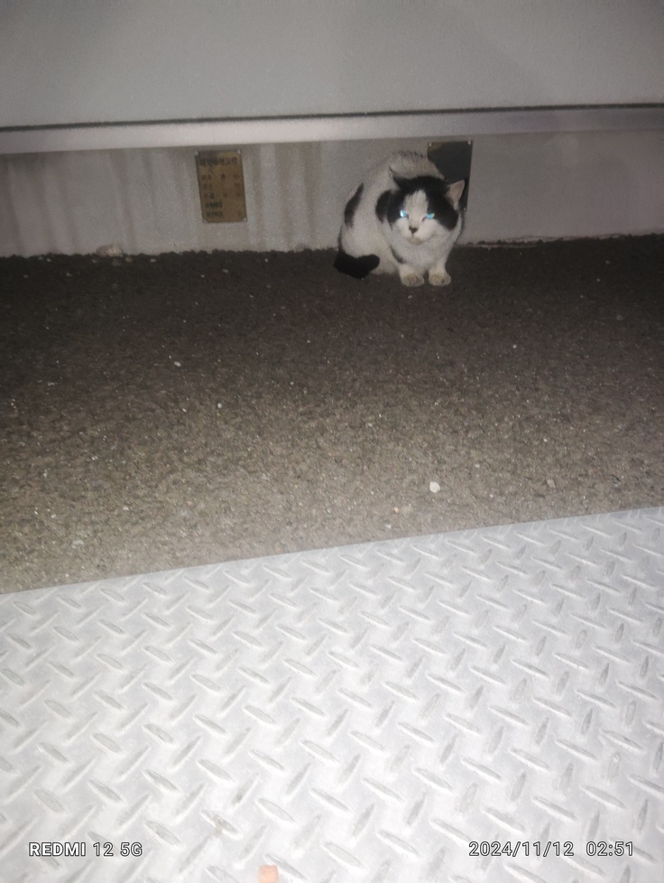 久しぶりに黒猫の斗真君の父猫が現れました、長毛で、尻尾はかぎしっぽで、息子猫と瓜二つですが、体はその2倍なのです…お腹を空かせて皆の所まで来ていました😊