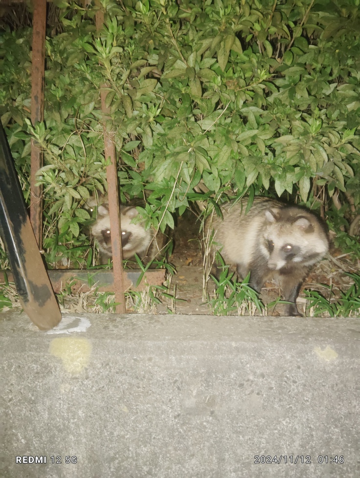 昨日はタヌキ同士が喧嘩をし始めました、兄弟なのに弱い子を強い子がいじめ始めたのです😥 全然辞めないので止めに追い掛けたら一斉に逃げて行きました😨
