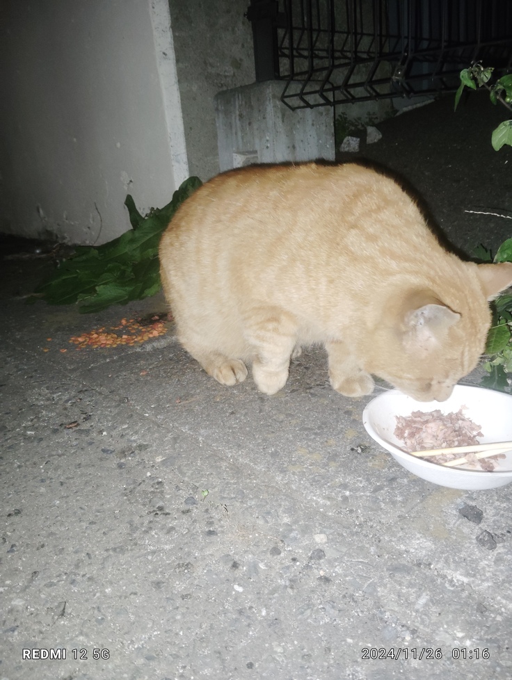 市営住宅の子達も毎日夜中遅くに私の餌やりをお腹を空かせて待ってくれています💦 餌場の入れ物は相変わらず空っぽになっている犯人が分かりました😮💨