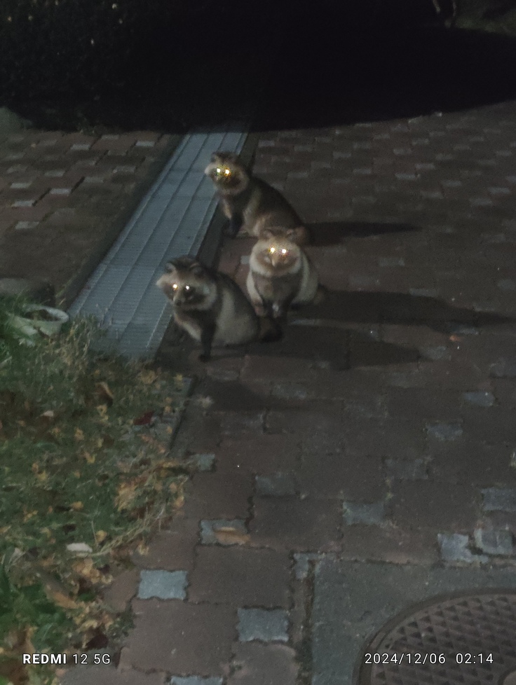 先月は車のスタッドレスタイヤ等の購入や月末の支払いで病院には連れて行く余裕も無いのですが… 自分のリューマチの注射を半分の量にしてもらいましたが、全く効かないのです😥 あっちこっちが痛み始めて来ています💦 今は全身湿布を貼っていなければ次の日にまだ歩けなくなりそうなのです💦 夜中の餌やりも3時間近く掛かってしまって居ますので、全身が凍っているかの様に思えて来ます🥶 なのにタヌキ共が猫達の餌を狙っているので、わたしが離れるともうタヌキに猫達の餌を食べられているのです😱 ずっと見張らなきゃいけないので、早く食べなさい〜と猫達を急かしていますが、