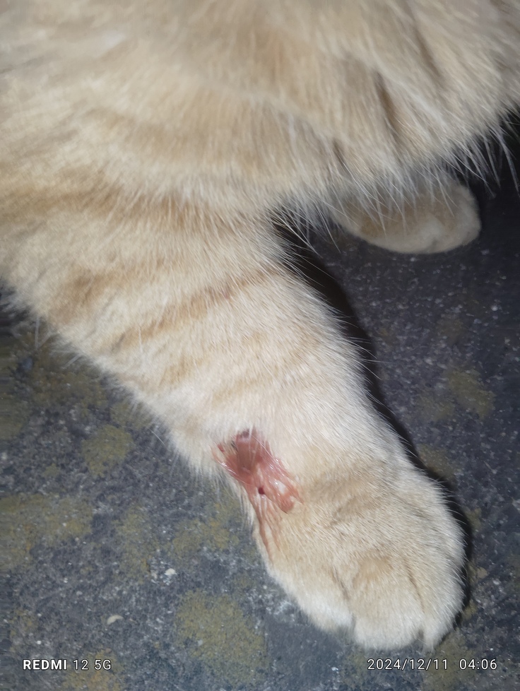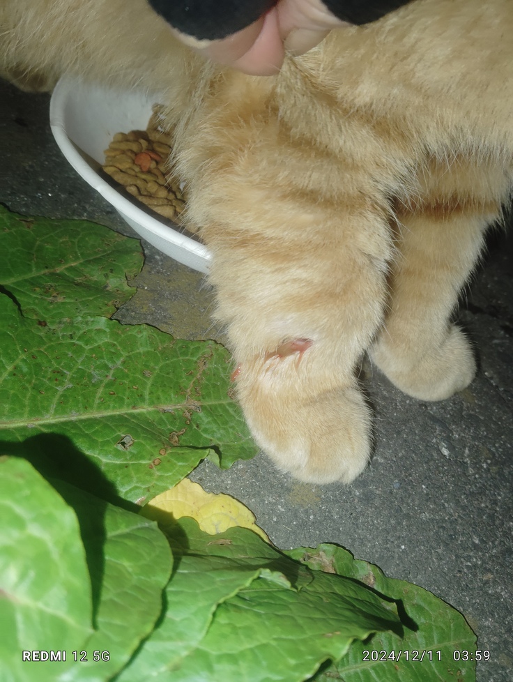 野良猫のたま君は2週間前から喧嘩で噛まれた足がなかなか治りません💦 何故なら、奴はいつもは毎晩出て来るのに、1日置きにしか出てこなくなりました💦 化膿どめをちゃんと飲めていません😥