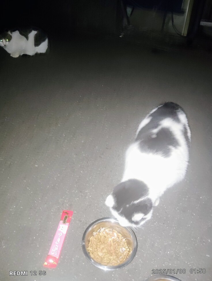 小屋を作ってくれたおじいちゃんの所でお世話になっているおばあちゃん猫家族も白黒のメス猫ちゃんを除いて皆ご飯を食べに待ってくれています🥴 寒さが増す中で小屋に入れるのはとても有り難い事です。本当におじいちゃんには感謝しています😊