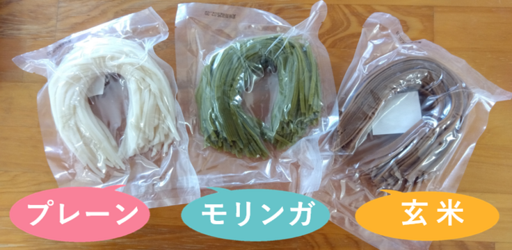 グルテンフリーのモリンガうどん、玄米うどん、プレーンの白うどんの3種類を作ります。