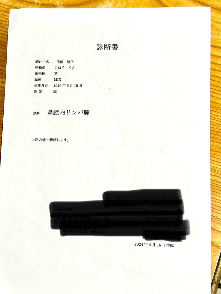 ページ上に掲載している診断書や診療明細書などの資料は全て動物病院から掲載の許諾を得ております。