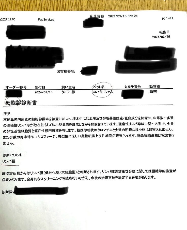 結果は残念ながらリンパ腫でした。