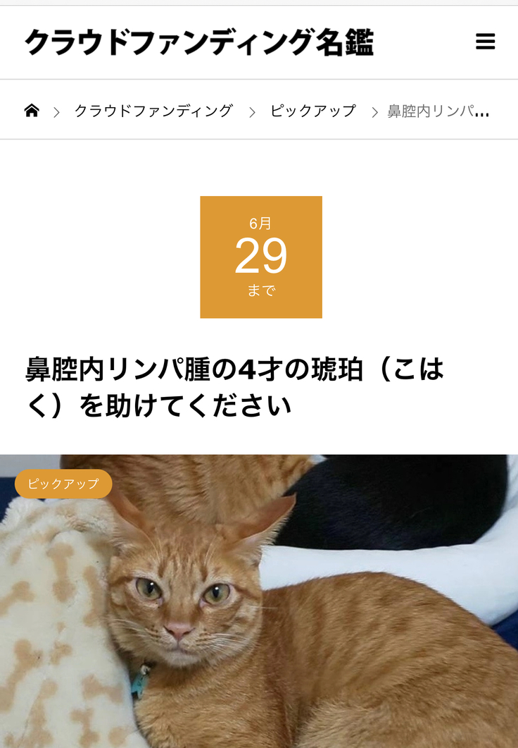 クラウドファンディング名鑑に琥珀の事が掲載されました。