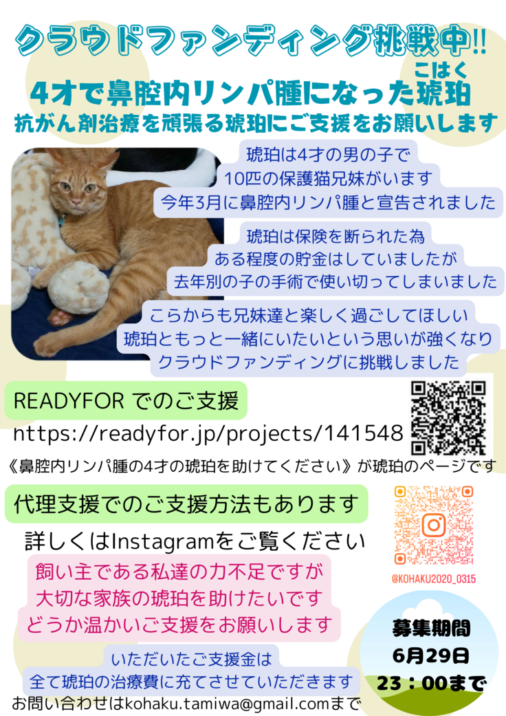 【4歳10ヶ月悪性リンパ腫】愛猫きなこの抗がん剤治療のためのご支援