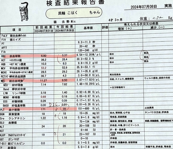 7/6 かかりつけ医へ点滴に行きました。2.80kg