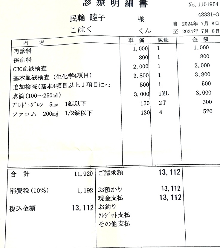 先生は「多分、腫れも引いてるから抗がん剤が効いて骨髄抑制が起こってるせいだとは思うけど、続くようなら少し心配だ」とおっしゃってました。
