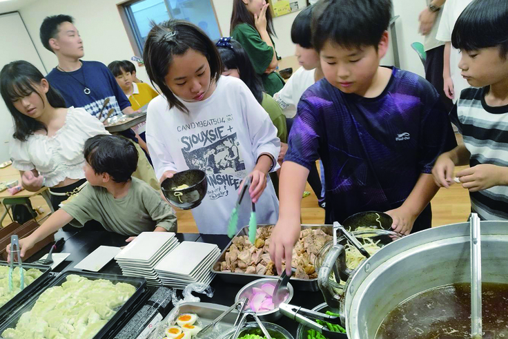 子ども食堂は、中学生までの子どもや保護者を対象として、大学生や地域のボランティアの方々にサポートいただきながら、地域と子どもや保護者がつながる場として月1回実施しています。