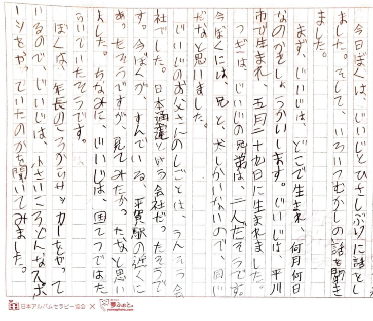 さて、「敬老の日子ども作文&パネルコンテスト」の主旨のひとつに「家族コミュニケーションを生み、離れていた家族の心を繋ぐこと、子供たちと高齢者の愛ある会話で家族全員が繋がる」があります。