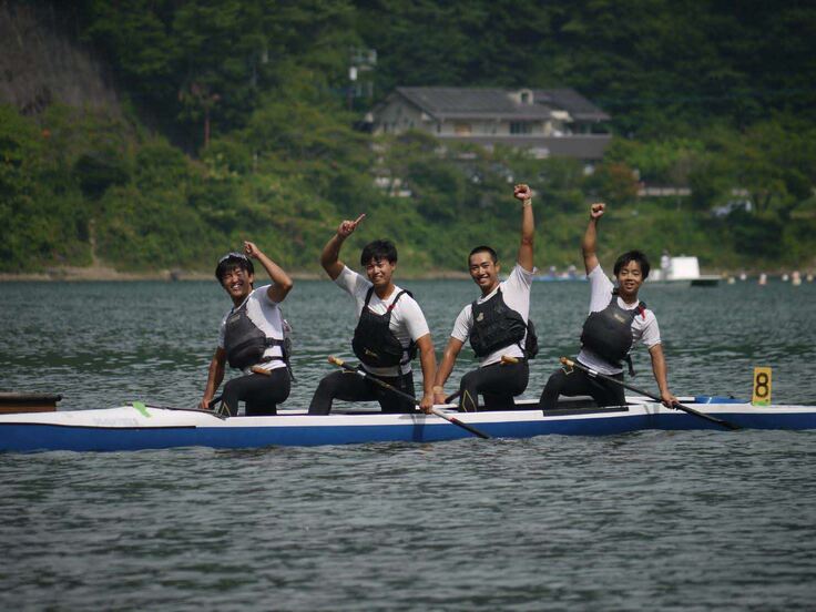今年(R6)のインターハイでは、男子カナディアンフォア500mでチーム史上初となる優勝を飾ることができました。続く文部科学大臣杯でも同種目で優勝、200mにおいても優勝することができました。