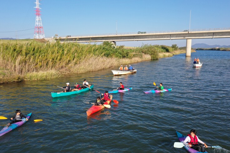カヌー部は、1級河川である神戸川(かんどがわ)を練習拠点にしています。事故無く毎日安全に練習ができていることに感謝し、川の清掃活動にも取り組んでいます。そして、カヌー体験教室も開催し、ジュニアの発掘・育成にも関わっています。