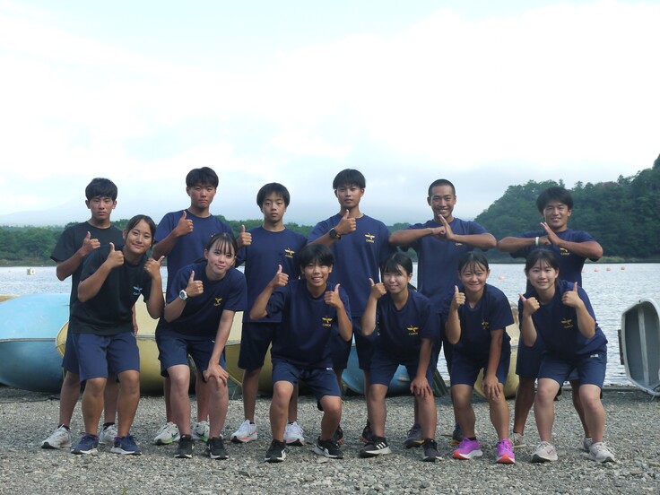 カヌー部は男子10名、女子が10名の計20名で活動しています。近年、先輩方が日本代表として国際大会に出場されるようになりました。私たちの代では、3名が日本代表として日の丸を背負い、海外選手と戦ってきました。また、今年度のインターハイではチーム史上初となる男子カナディアンフォア500mで優勝することができました。