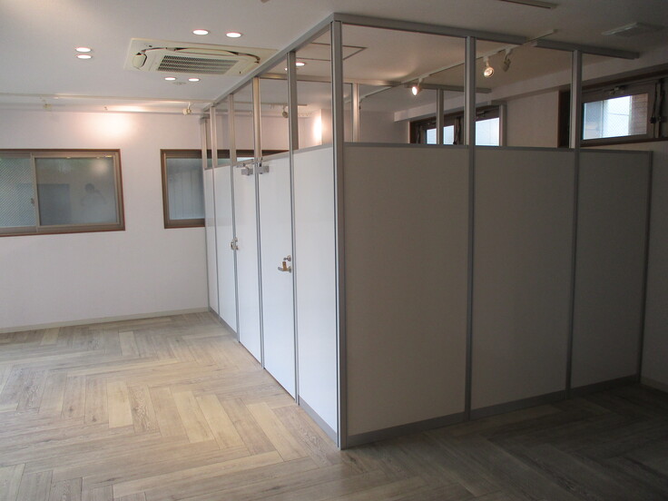 先日、西片未来教室に職員室と相談室のアルミパーテーションの設置工事を行いました。